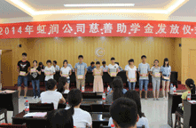 2014年8月22日,虹潤公司一年一度的“圓夢(mèng)助學(xué)行動(dòng)”捐資助學(xué)儀式在虹潤科技園辦公大樓四樓禮堂隆重舉行。順昌縣委副書(shū)記易才卿、順昌縣關(guān)工委主任黃春娣、順昌縣政協(xié)副主席黃為雄、順昌縣文體局局長(cháng)李元生、團縣委書(shū)記吳詩(shī)源、順昌縣工會(huì )副主席蘭榮妹、虹潤公司董事長(cháng)林善平以及相關(guān)部門(mén)領(lǐng)導出席了儀式。