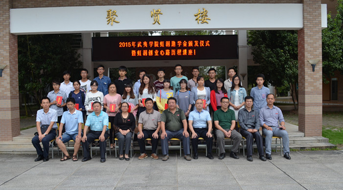 姚進(jìn)生、林善平等與會(huì )領(lǐng)導為獲得虹潤助學(xué)金的同學(xué)頒發(fā)了證書(shū)。林善平用自己的創(chuàng )業(yè)歷程告訴同學(xué)們要尊重自我,在暫時(shí)的逆境中砥礪品格,磨練意志,用自己的努力不斷增長(cháng)知識和才干,在以后的人生歷程中選擇更輝煌的道路。