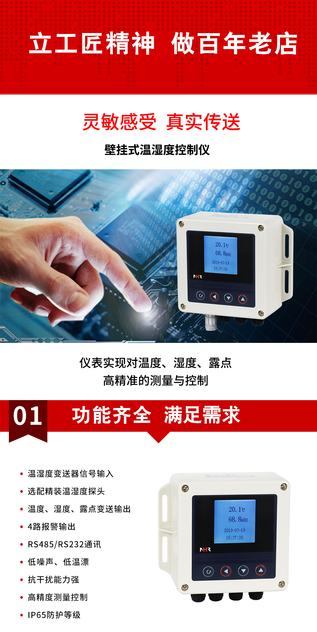 虹潤公司是專(zhuān)業(yè)生產(chǎn)環(huán)境監測儀表的國家專(zhuān)精特新“小巨人”企業(yè)。生產(chǎn)的壁掛式溫濕度控制器,具有溫度、濕度、露點(diǎn)高精準的測量,多種輸出類(lèi)型,穩定性強,RS485/RS232通訊,IP65防護等級等特點(diǎn)。產(chǎn)品獲得一種手持式低功耗溫濕度檢測儀、大屏幕溫濕度記錄儀等2項國家發(fā)明專(zhuān)利,主持起草物聯(lián)網(wǎng)智能溫度儀表通用技術(shù)條件、冷鏈溫度記錄儀等2項國家標準,通信系統多通道數據采集控制終端規范軍用標準,以及現場(chǎng)設備集成等5項智能制造國家標準,參與國際5G標準制定,取得溫濕度儀表等2項相關(guān)軟件著(zhù)作權。產(chǎn)品廣泛應用于工業(yè)現場(chǎng)、農業(yè)大棚、倉儲物流、地下管廊、養殖孵化、配電機房等諸多領(lǐng)域。
