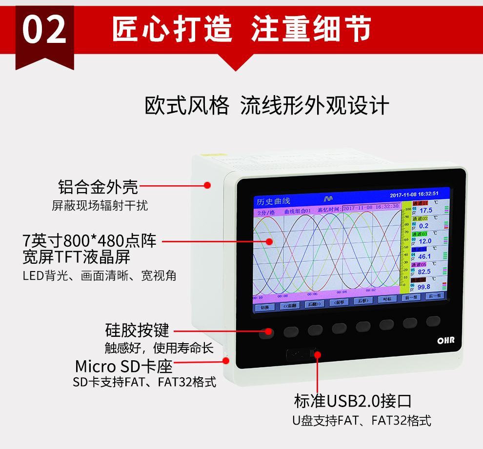 OHR-H700系列多路彩色數據采集無(wú)紙記錄儀