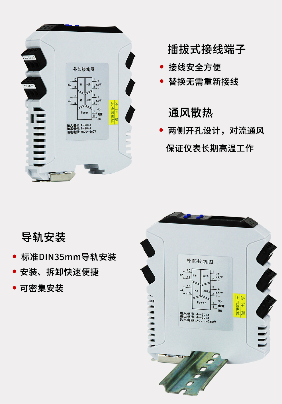 虹潤公司是專(zhuān)業(yè)生產(chǎn)隔離器的國家專(zhuān)精特新“小巨人”企業(yè)。生產(chǎn)的導軌式智能隔離器 ,具有高清顯示單元,參數可設置,寬電源供電,響應快,帶RS485通訊等特點(diǎn)。產(chǎn)品獲得信號隔離器、一種二端子模塊、無(wú)源信號隔離器等3項國家發(fā)明專(zhuān)利,主持起草現場(chǎng)設備工具(FDT)接口規范、工業(yè)過(guò)程測量和控制系統用隔離式安全柵、工業(yè)過(guò)程測量和控制系統用配電器等3項國家標準,以及通信系統多通道數據采集控制終端規范軍用標準,參與國際5G標準制定,取得智能隔離器等2項相關(guān)軟件著(zhù)作權。產(chǎn)品廣泛應用于電力、石化,冶金、制藥、水處理、機械配套等各種工業(yè)現場(chǎng)。
