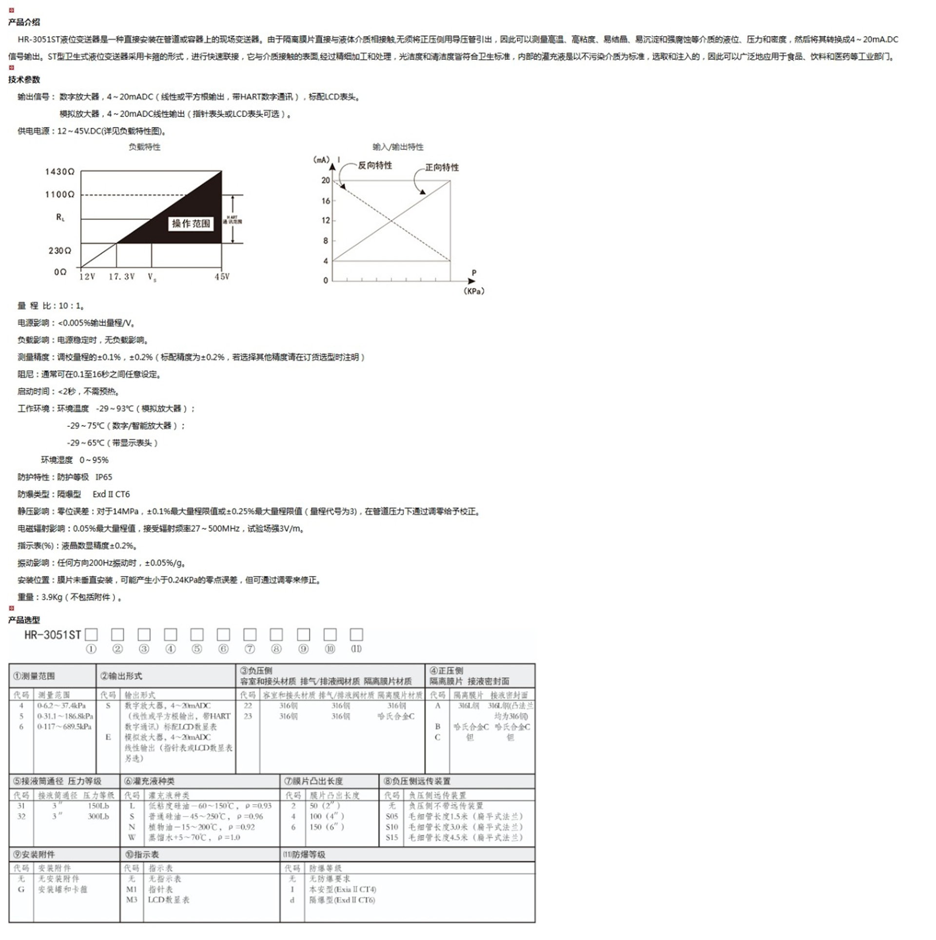 HR-3051ST衛生型液位變送器